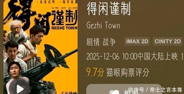由肖战,彭昱畅,周翊然主演,孔笙导演,正午阳光制作的电影《得闲谨制》正在热播中,虽然才上映2天,但是猫眼的评分已经出来了9.7分,这个数据还是很不错的。
